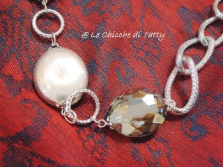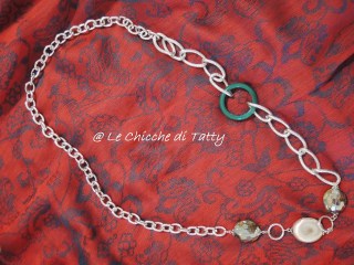 Quest’ultima collana è in metallo argentato con cristalli e giada.
