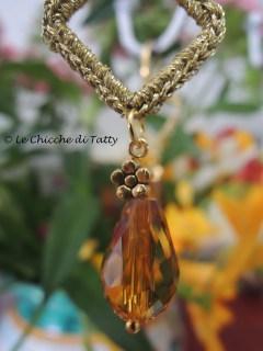 Mentre il paio che segue è realizzato con un filo metallico color oro e completato da un vezzoso fiorellino dorato ed una goccia di cristallo color ambra.