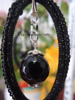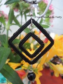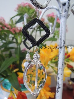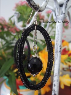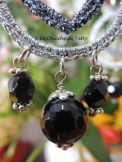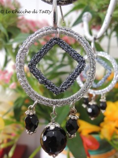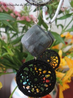 L’ultimo paio che vi presento, invece, si compone di una parte all’uncinetto realizzato con un filato Lurex nero ed un quadrato di Agata grigia sfaccettato.
