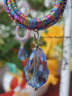 Di nuovo due cerchi di filato Lurex multicolor con un pendente di cristallo azzurro.
