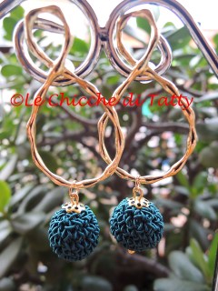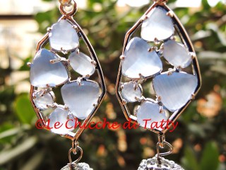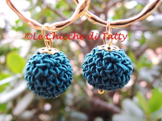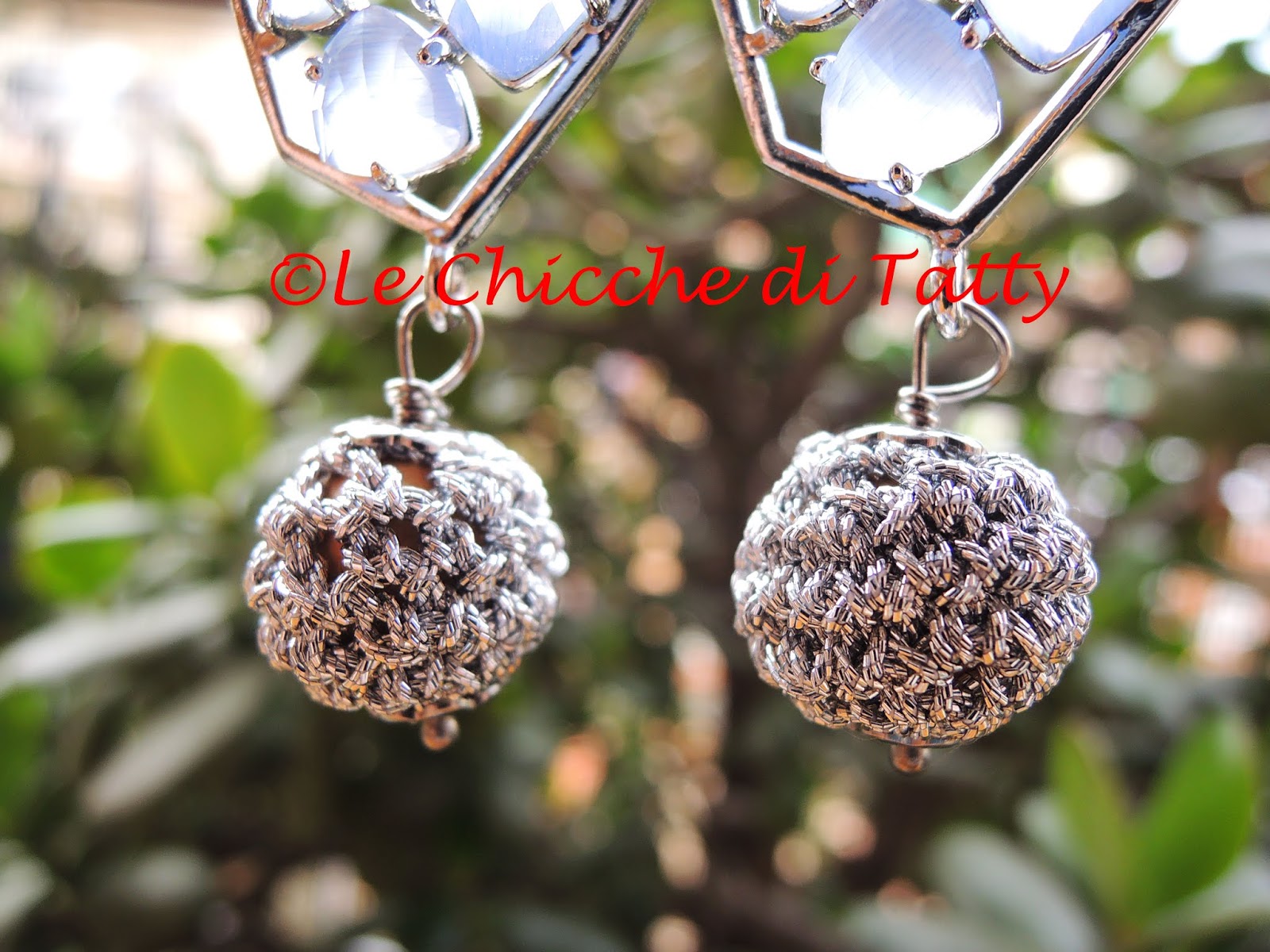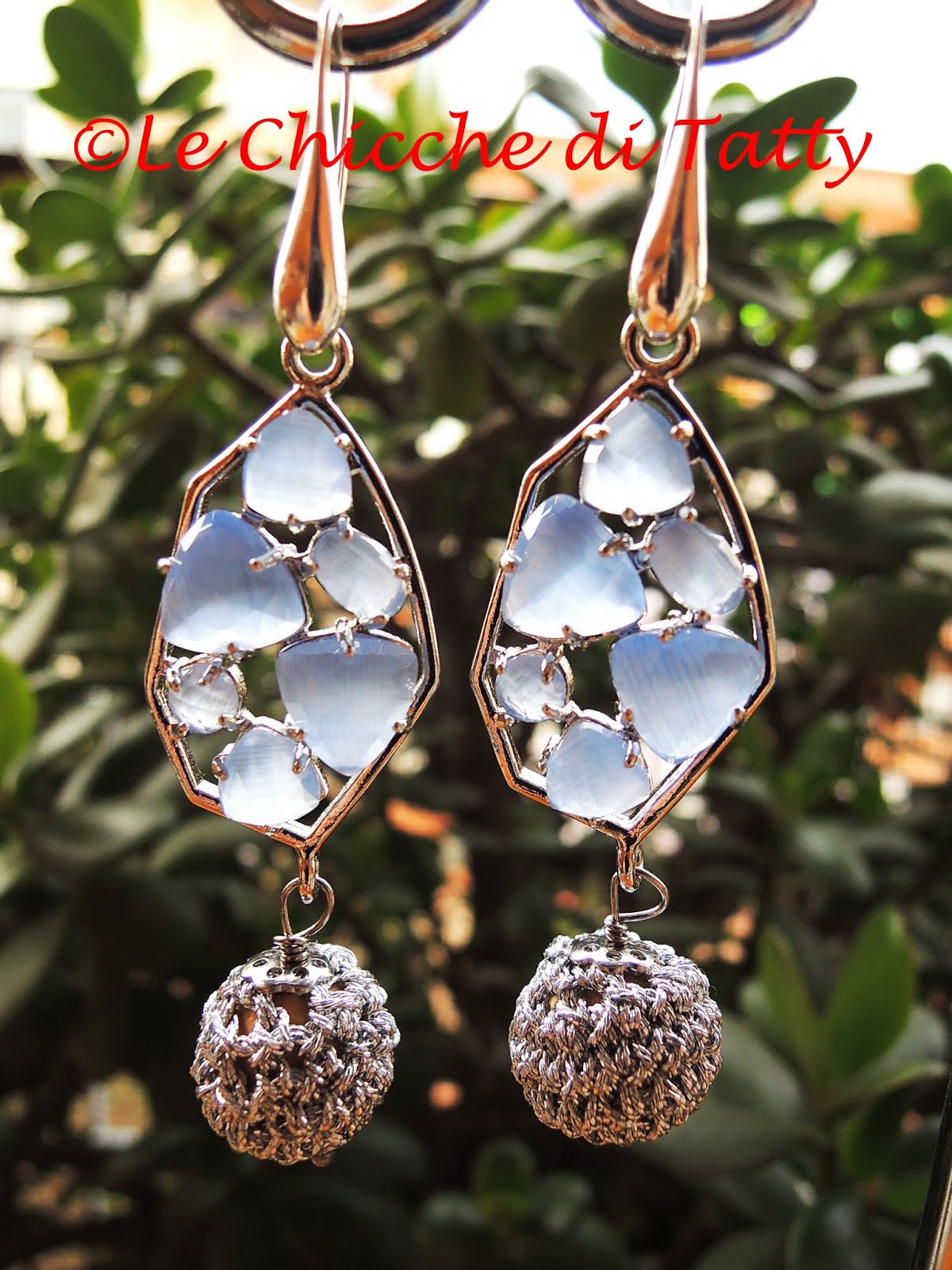 Occhio di gatto azzurro polvere e pallina rivestita all’uncinetto con filato gioiello color argento