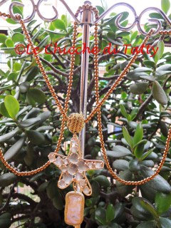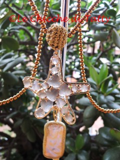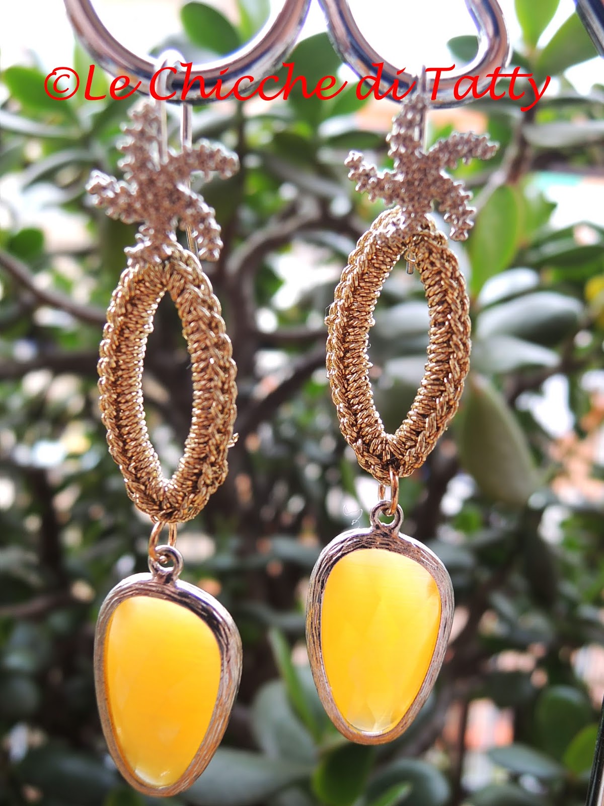 Gancio con stellina, particolare lavorato all’uncinetto con filato gioiello color oro, come pendente occhio di gatto giallo.