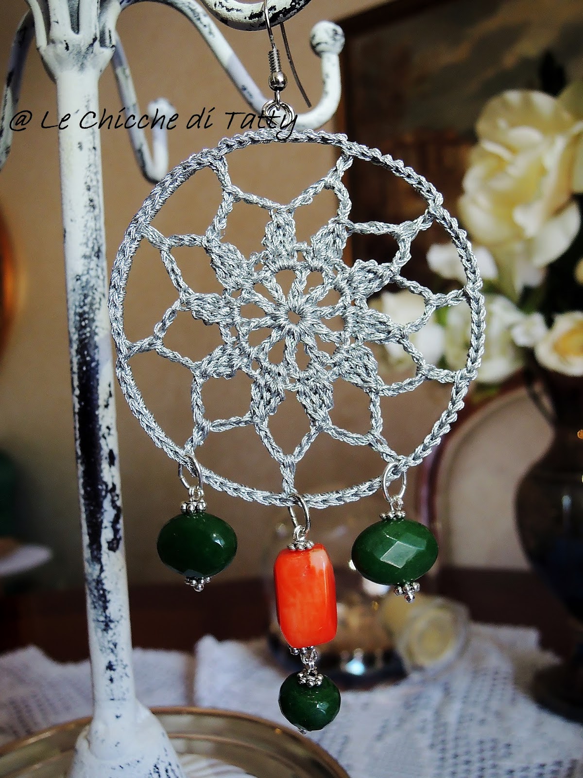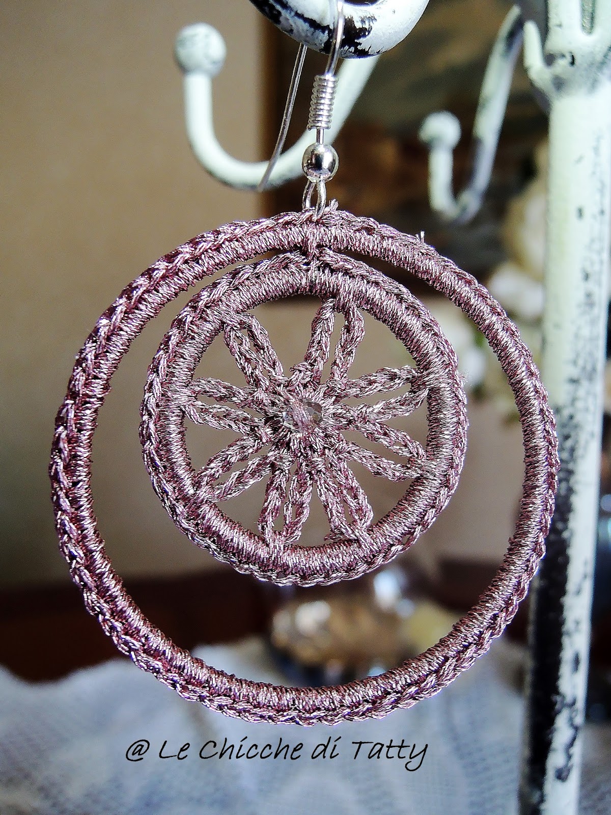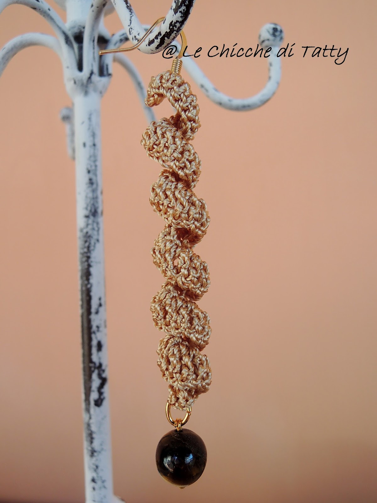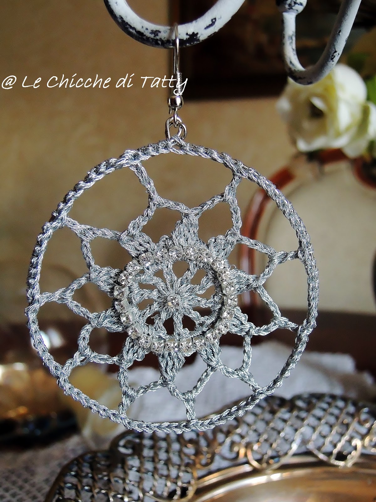 Il perno è a lobo ed è lavorato all’uncinetto con cristalli e filato gioiello.