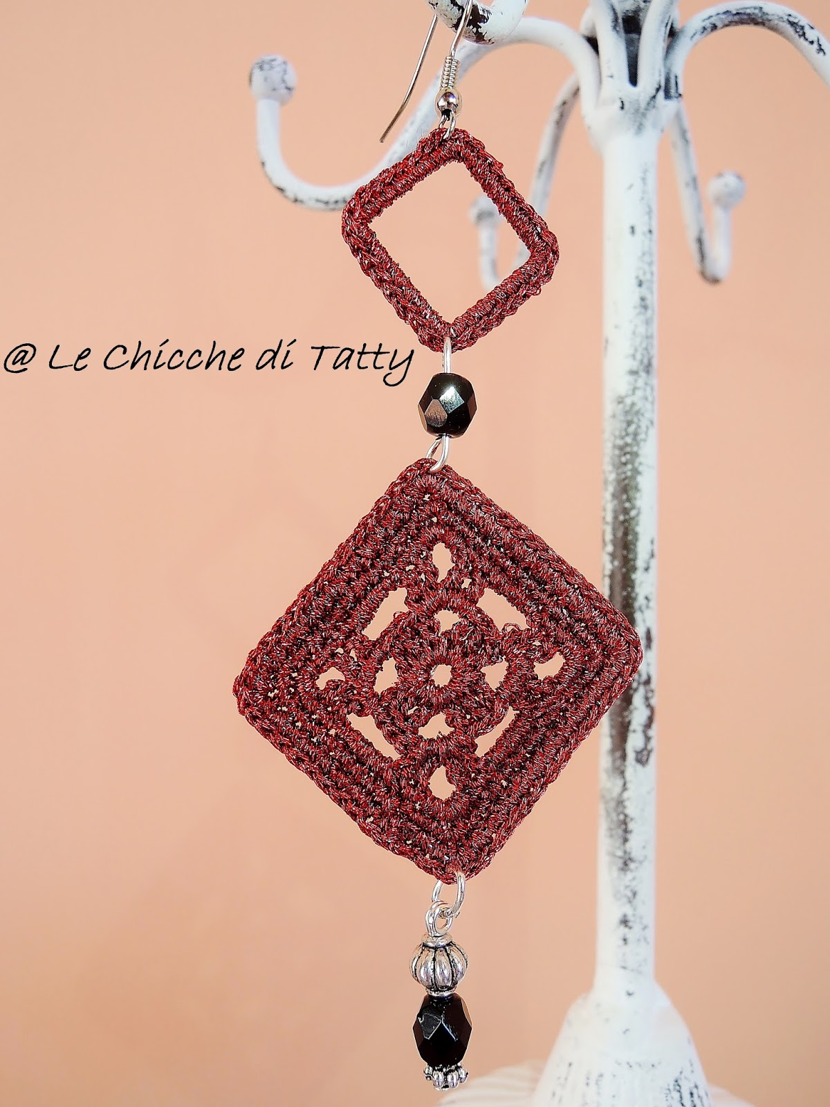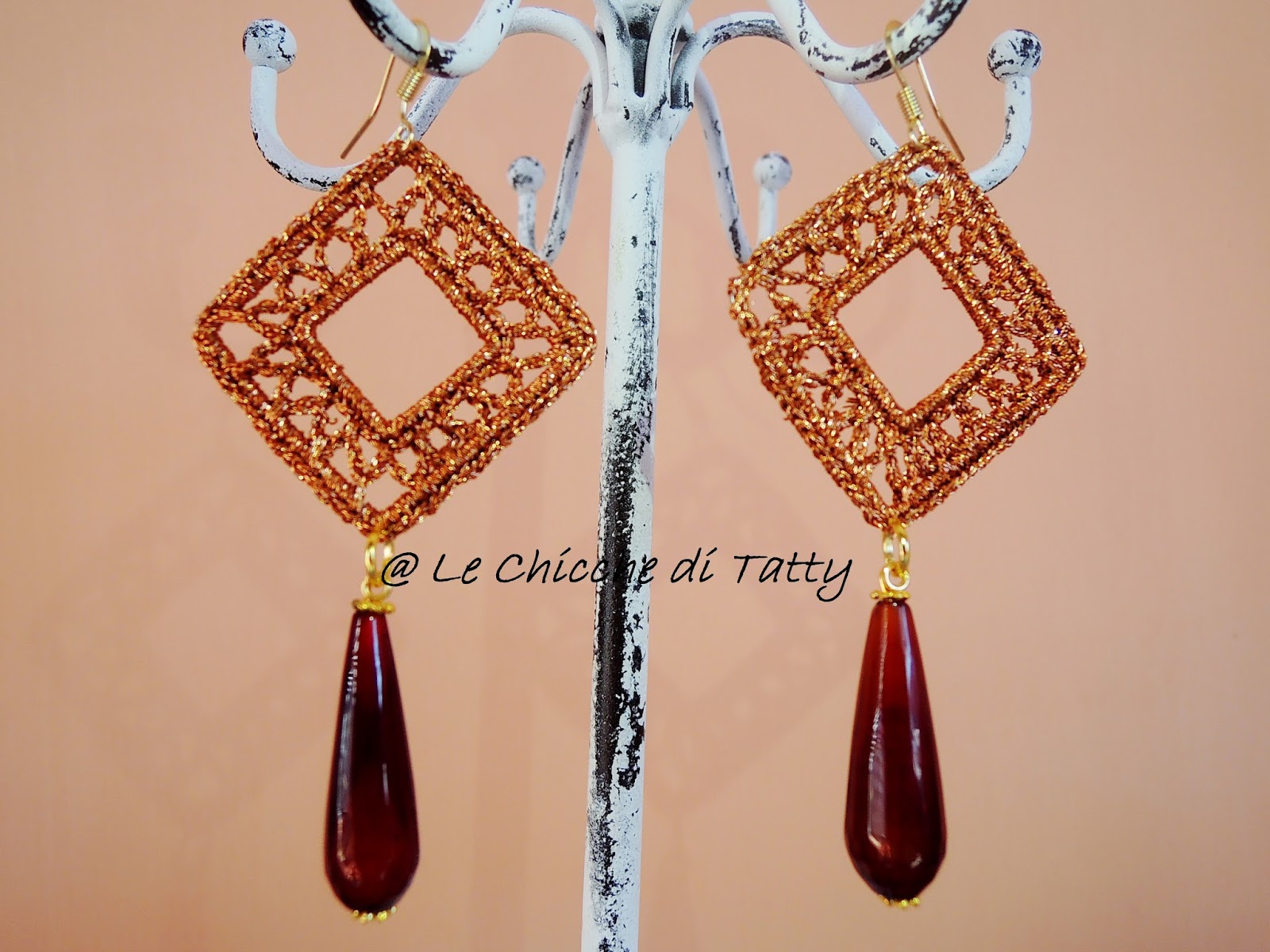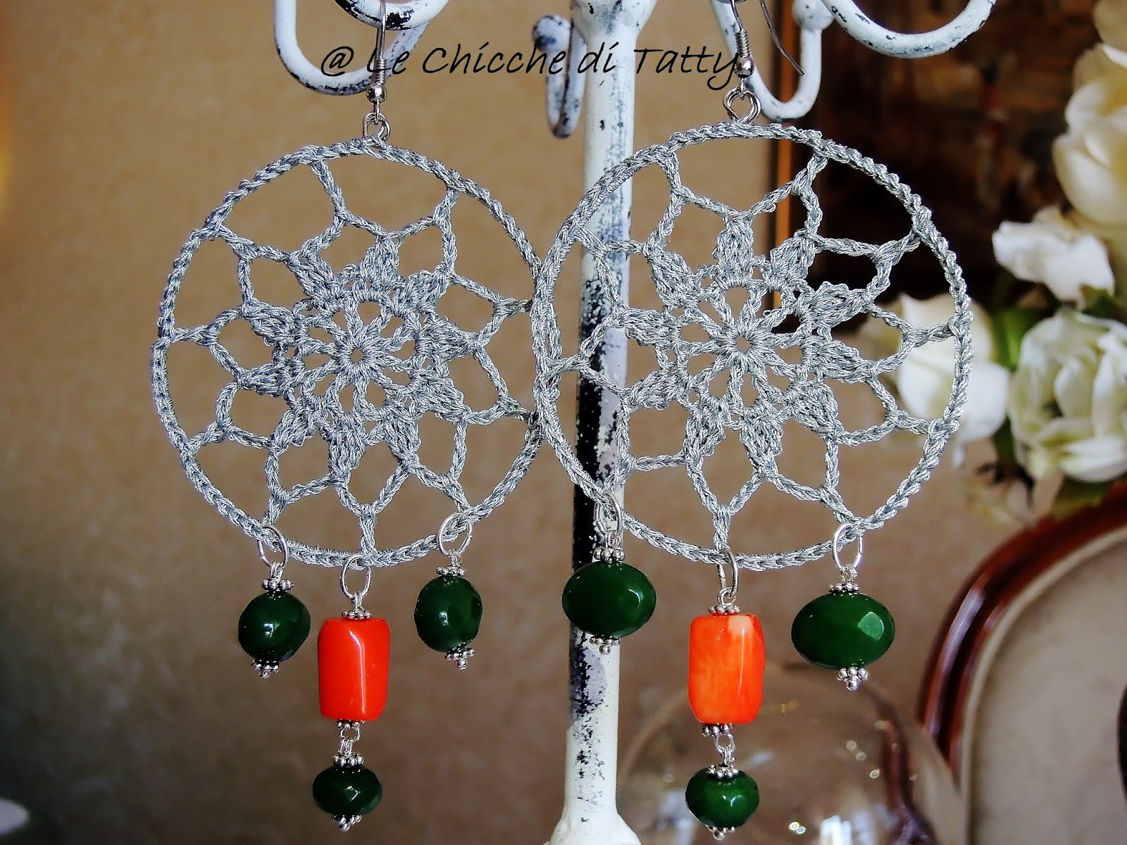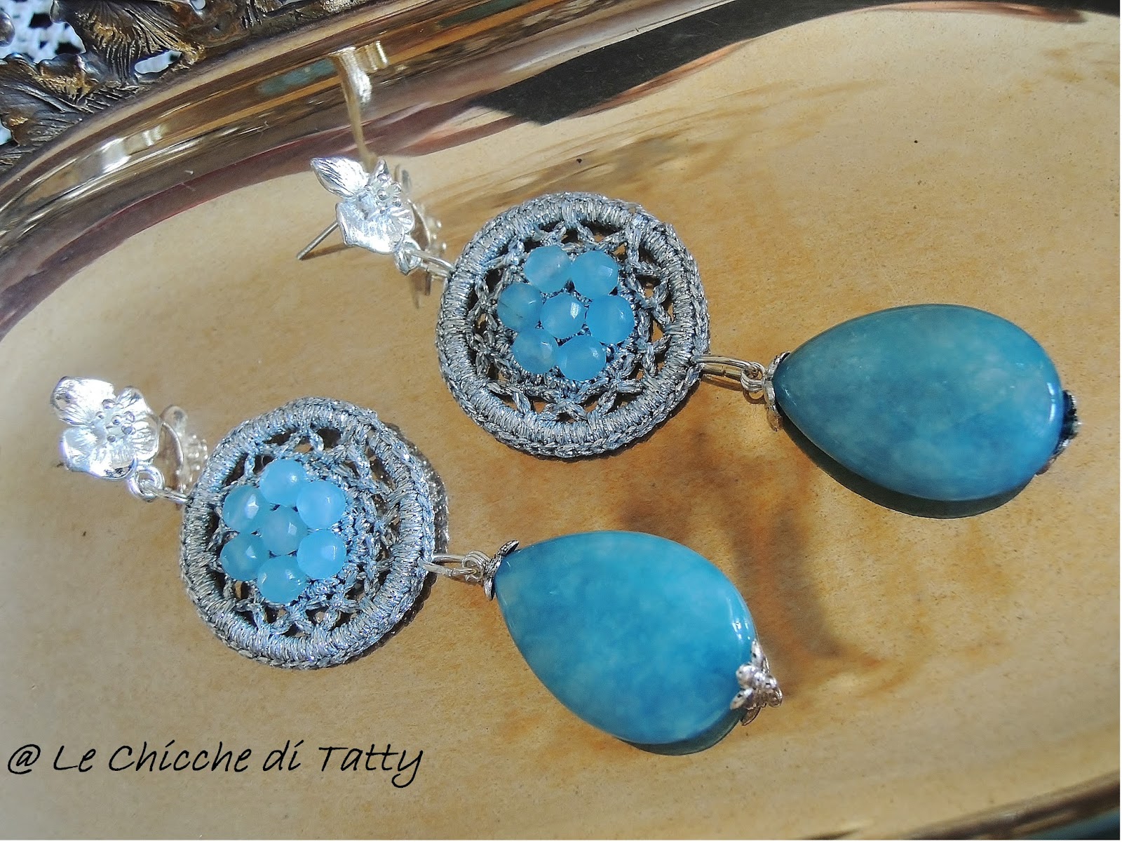 Il perno è a lobo ed è lavorato all’uncinetto con cristalli e filato gioiello.