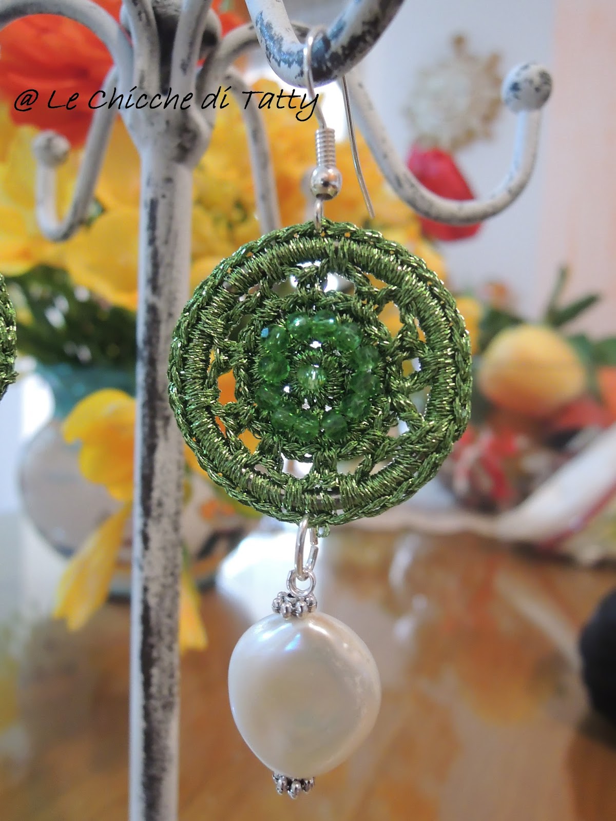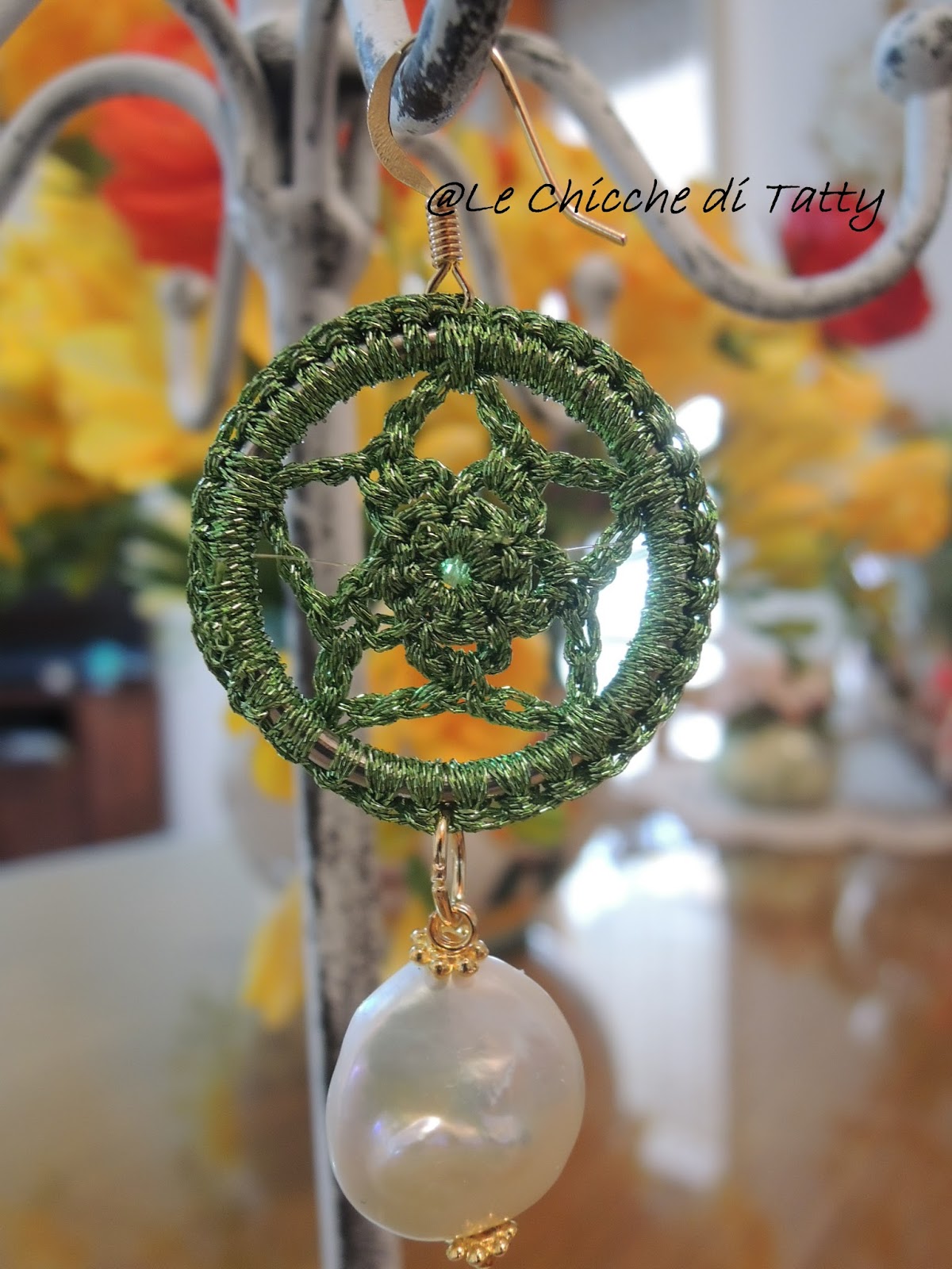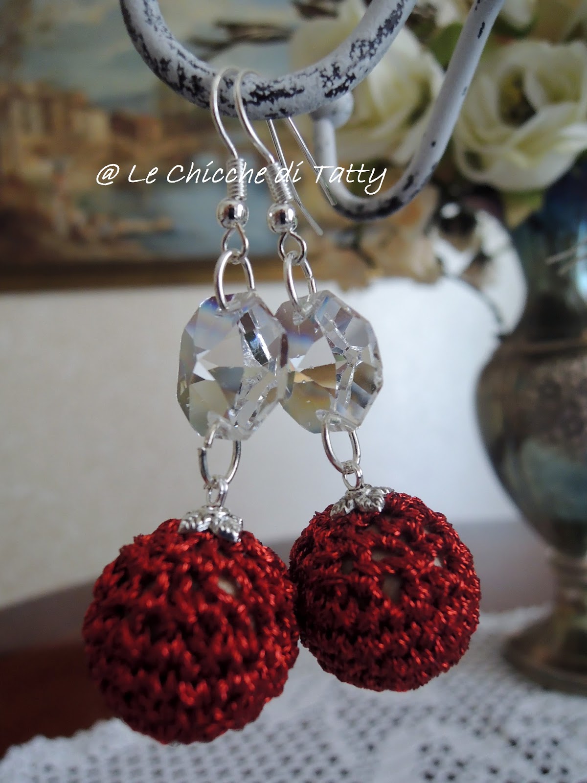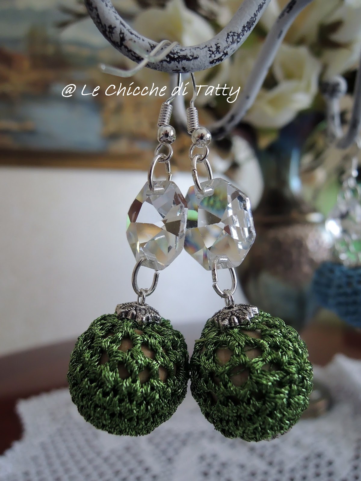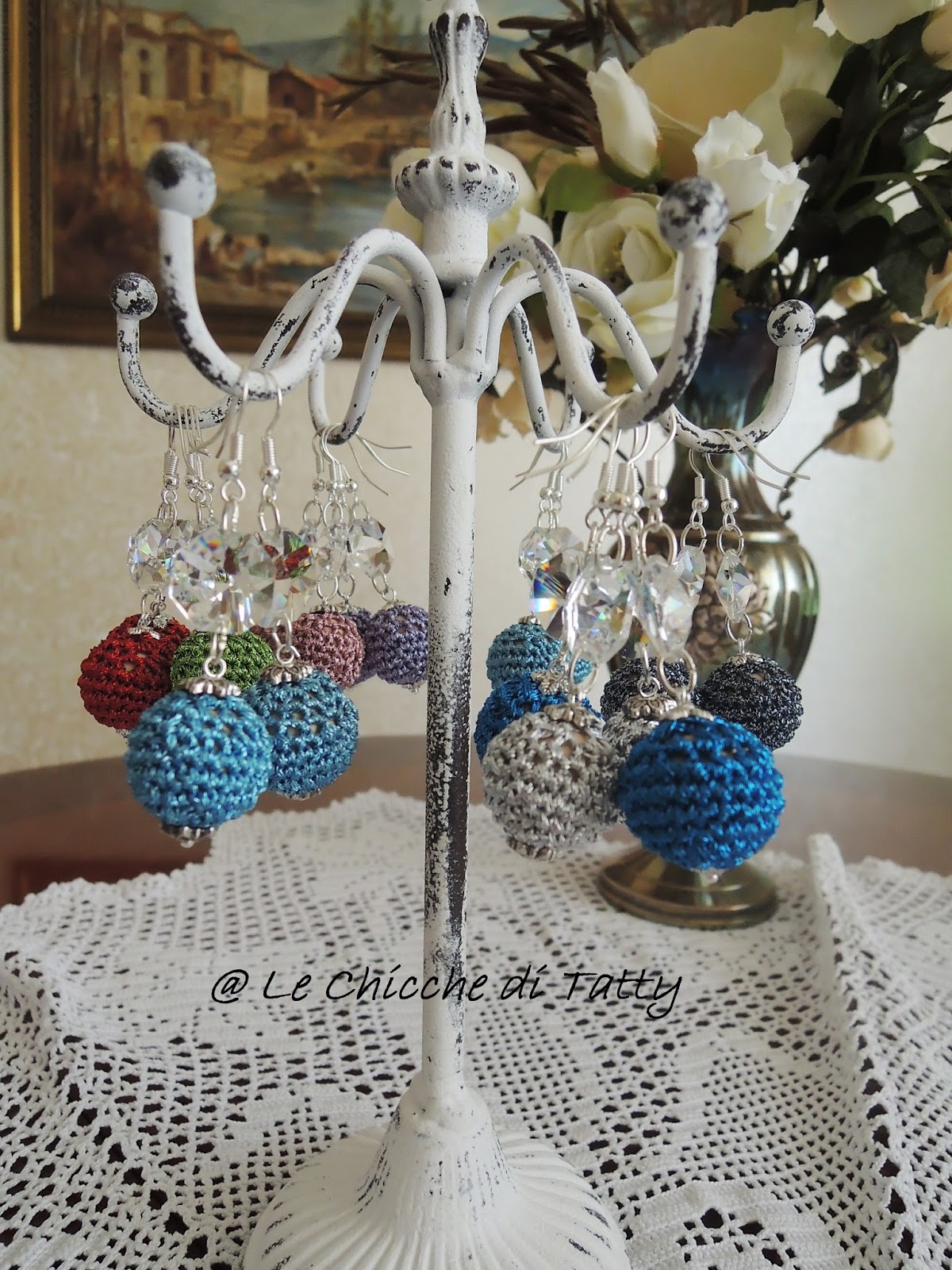 quest’ultimo paio di orecchini con particolari all’uncinetto.