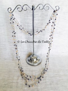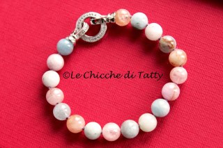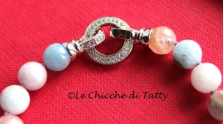 Il bracciale è in pietre naturali nei toni del grigio e del rosa completato da una chiusura gioiello con pavé di zirconi.