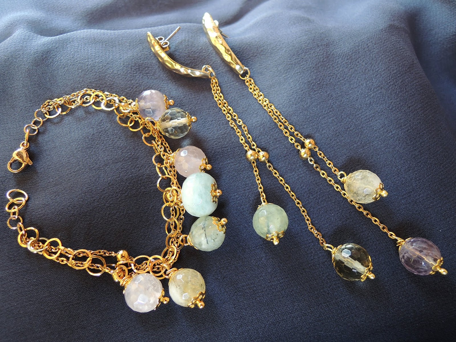ametiste, quarzi citrini e rosa sia per gli orecchini che per il bracciale.