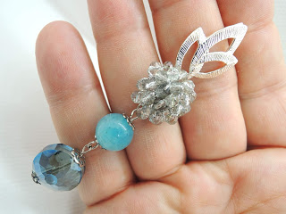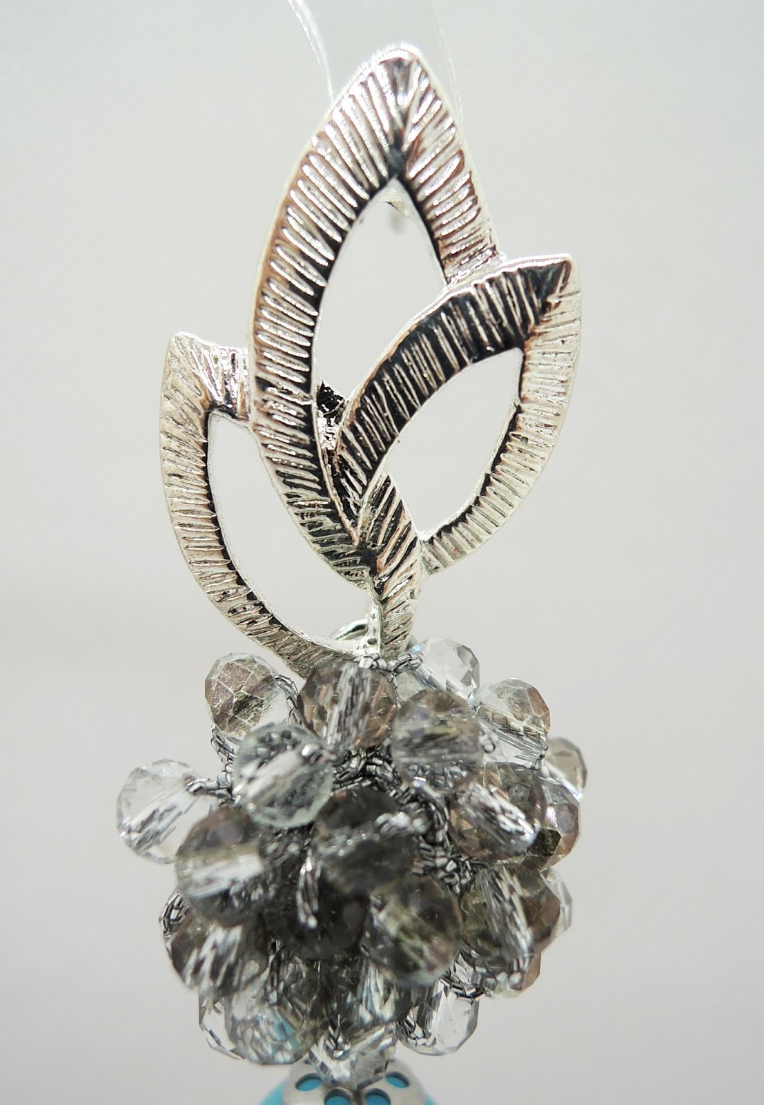 Il perno è a lobo ed è lavorato all’uncinetto con cristalli e filato gioiello.