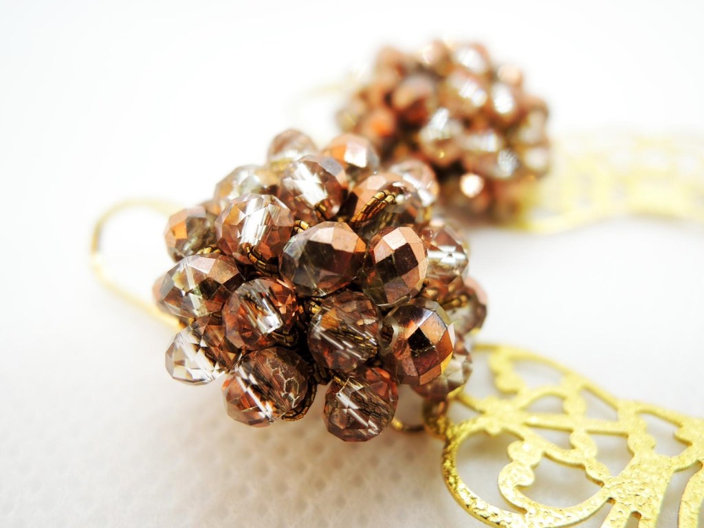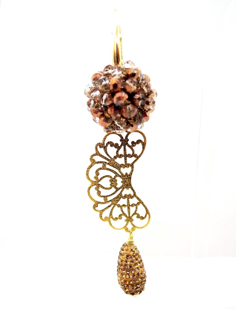Orecchini realizzati all’uncinetto con filato gioiello color oro.