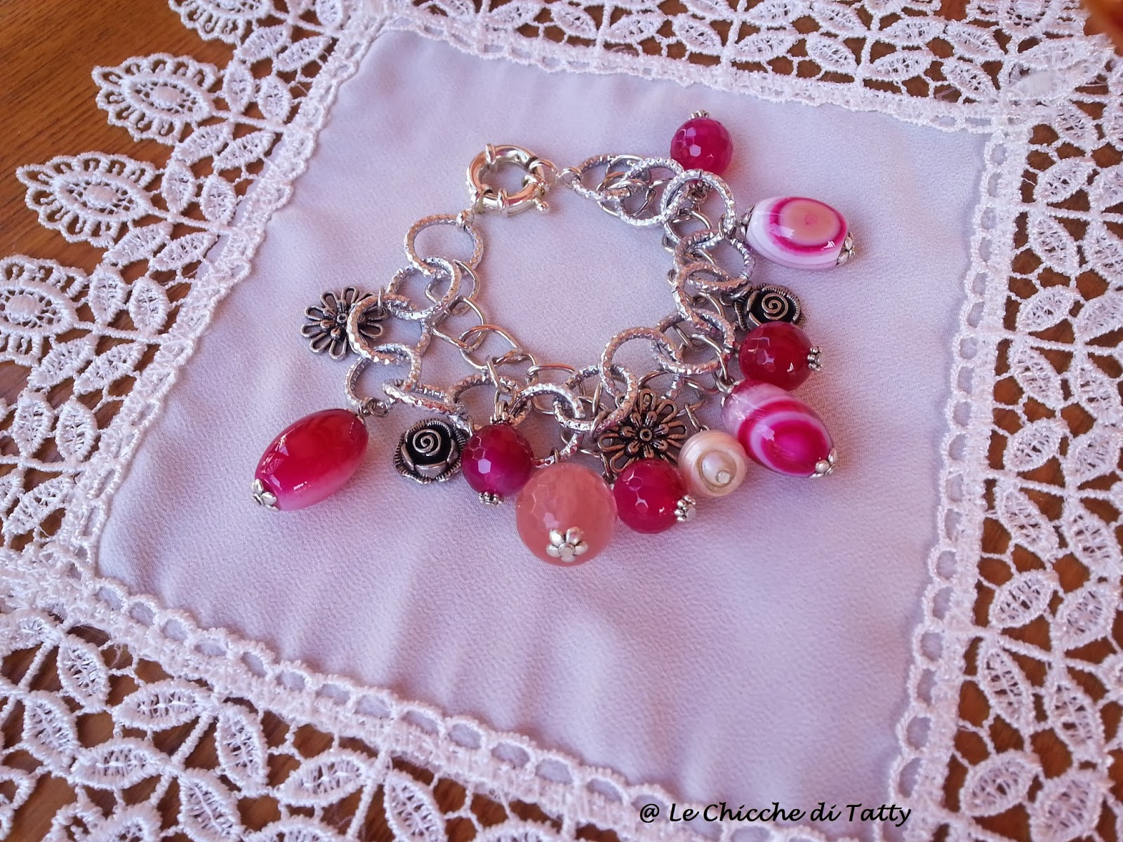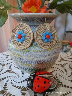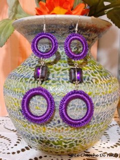 Sono diversi modelli di orecchini realizzati ad uncinetto, un bracciale con perline e petali di madreperla, ed un borsellino realizzato sempre con la tecnica dell’uncinetto.