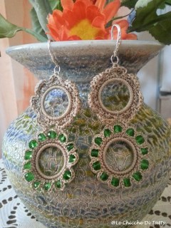 Orecchini in cotone color corda con cristalli verde smeraldo: