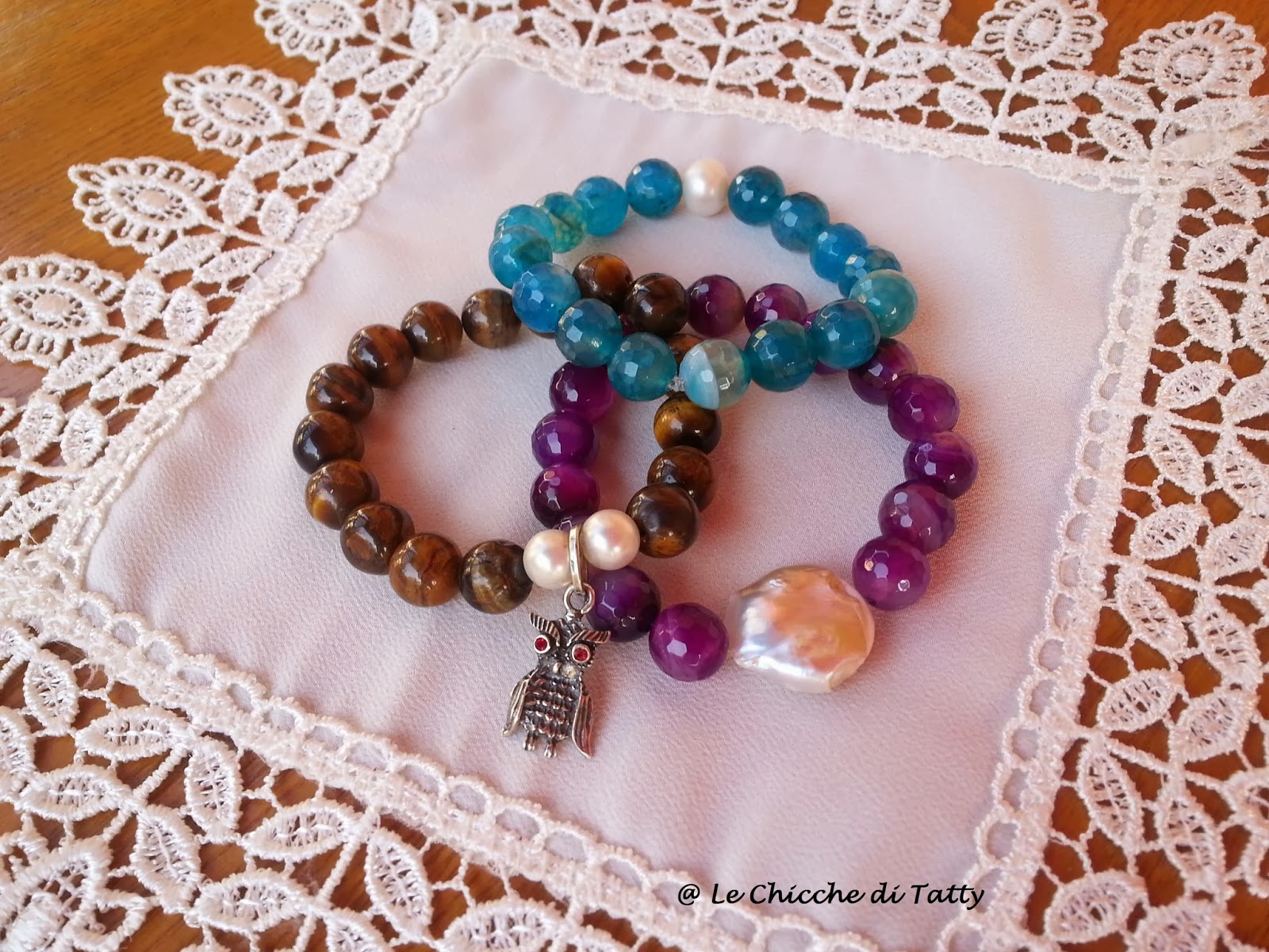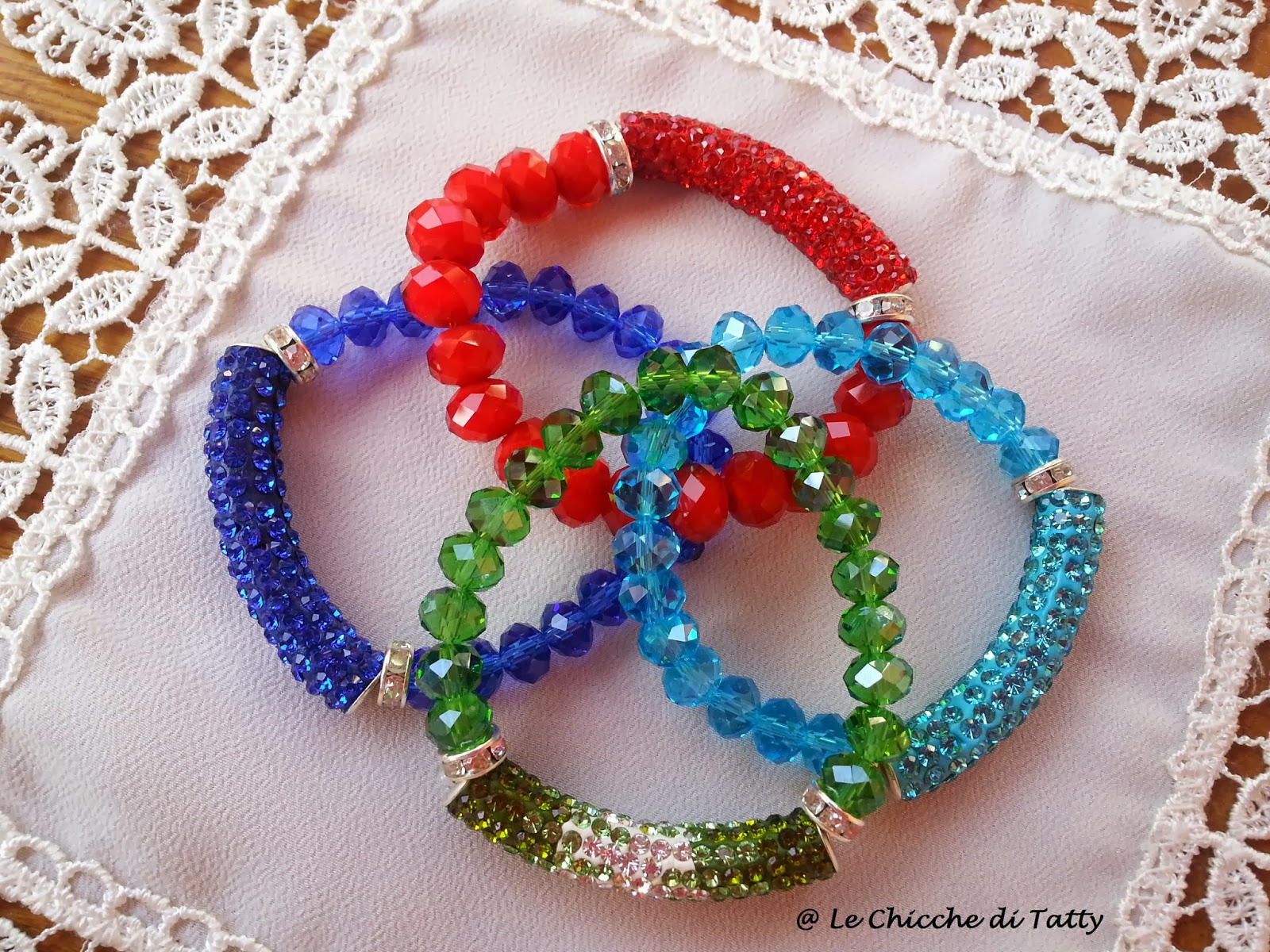 Questi invece con cristalli azzurri e rosso corallo: